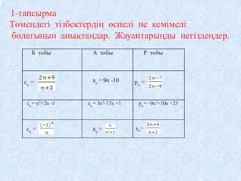 1.Тізбектің алғашқы бес мүшесін жазыңдар: