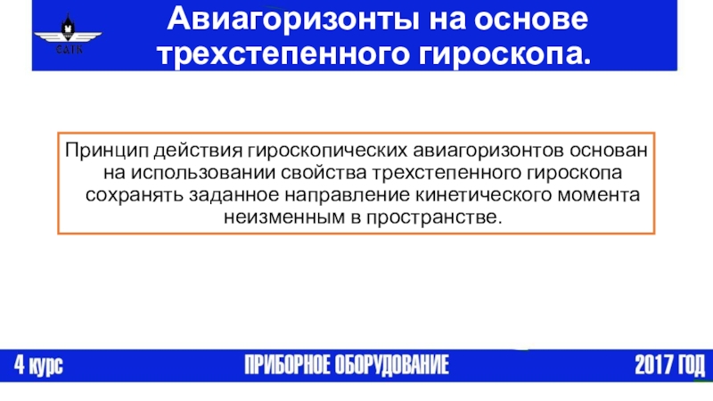 с тремя степенями свободы для определения вертикали места на ЛА. Авиагоризонты. Свойства гироскопа. Указатель поворота, датчик угловых скоростей. Магнитные и гироскопические измерители курса.