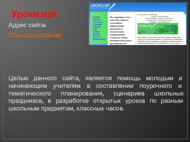 Целью данного сайта, является помощь молодым и начинающим учителям в