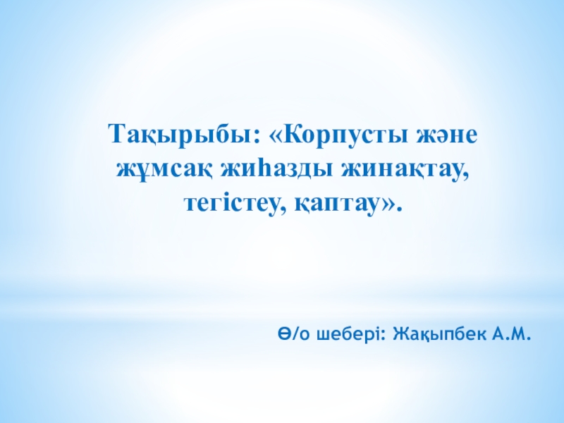 Слайд 1Ө/о шебері: Жақыпбек А.М.