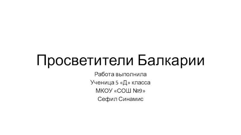 Просветители БалкарииРабота выполнила Ученица 5 «Д» классаМКОУ «СОШ №9»Сефил Синамис