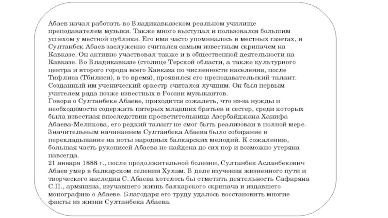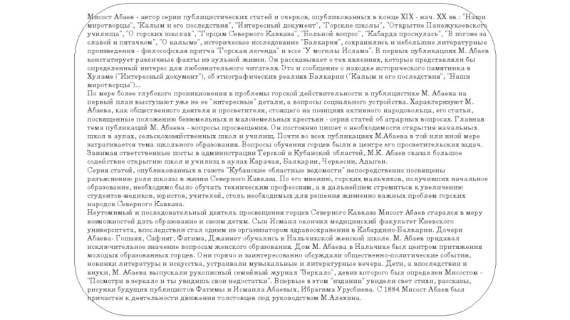 Презентация, доклад на тему Сефил Синамис Первые просветители Балкарии Исследовательская работа.