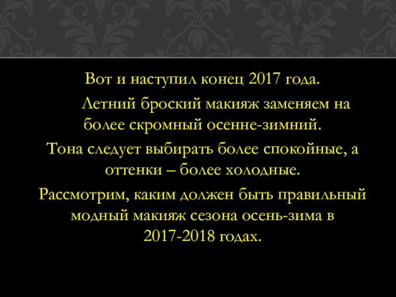 Презентация, доклад на тему Секреты красоты. Модный макияж осень-зима 2017-2018.