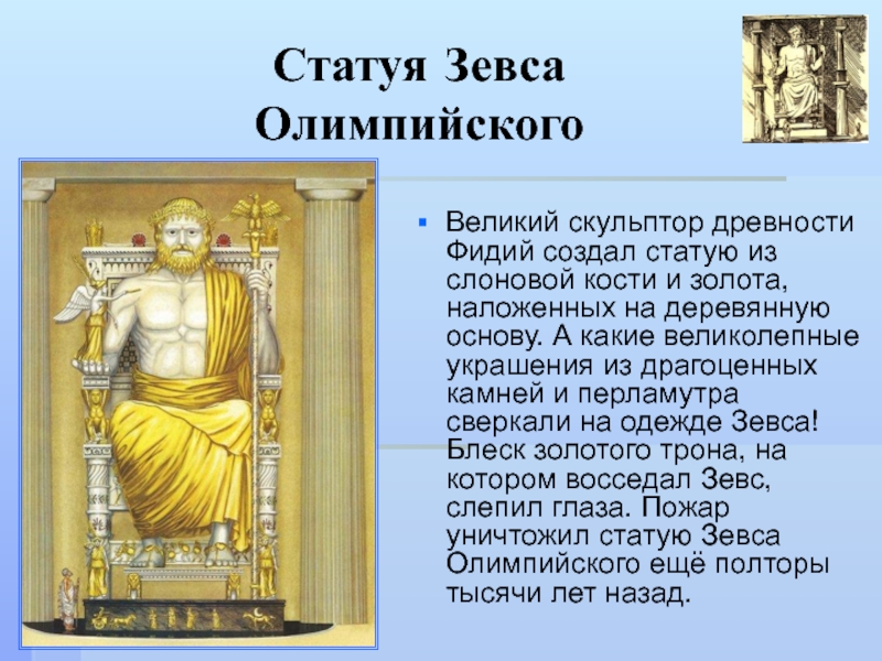Слайд 19Статуя Зевса Олимпийского