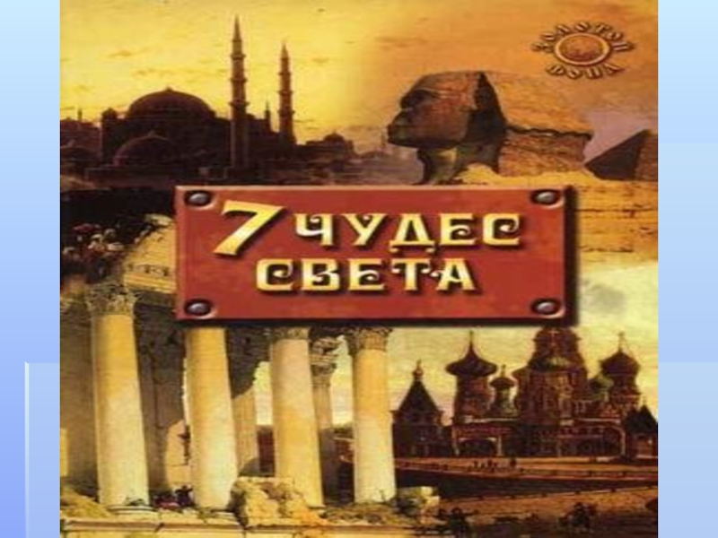 В почетный перечень вошли: египетские пирамиды, висячие сады Семирамиды, храм Артемиды в Эфесе, статуя Зевса Олимпийского, мавзолей в Галикарнасе, Колосс Родосский и Александрийский маяк на острове Фарос.