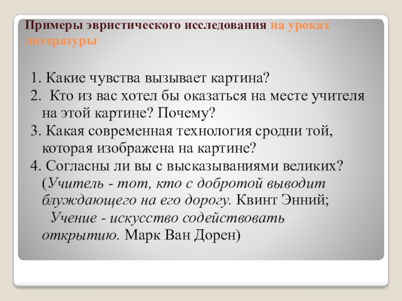 Слайд 17Примеры эвристического исследования на уроках литературы