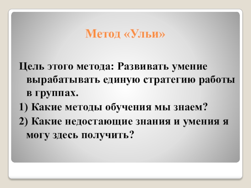 Цель этого метода: Развивать умение вырабатывать единую стратегию работы