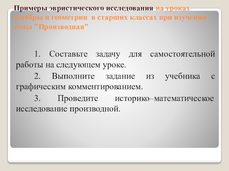 Примеры эвристического исследования на уроках алгебры и геометрии в старших классах