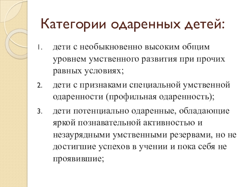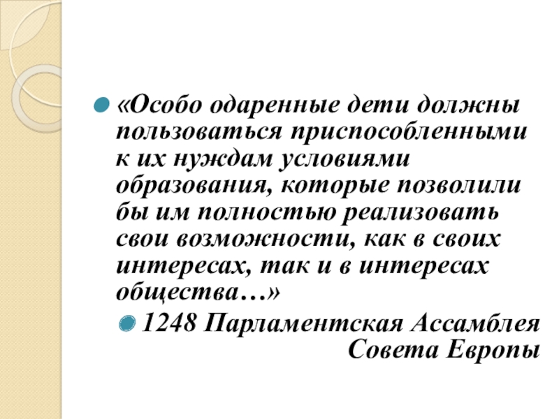 Слайд 2«Особо одаренные дети должны пользоваться приспособленными к их нуждам условиями образования,