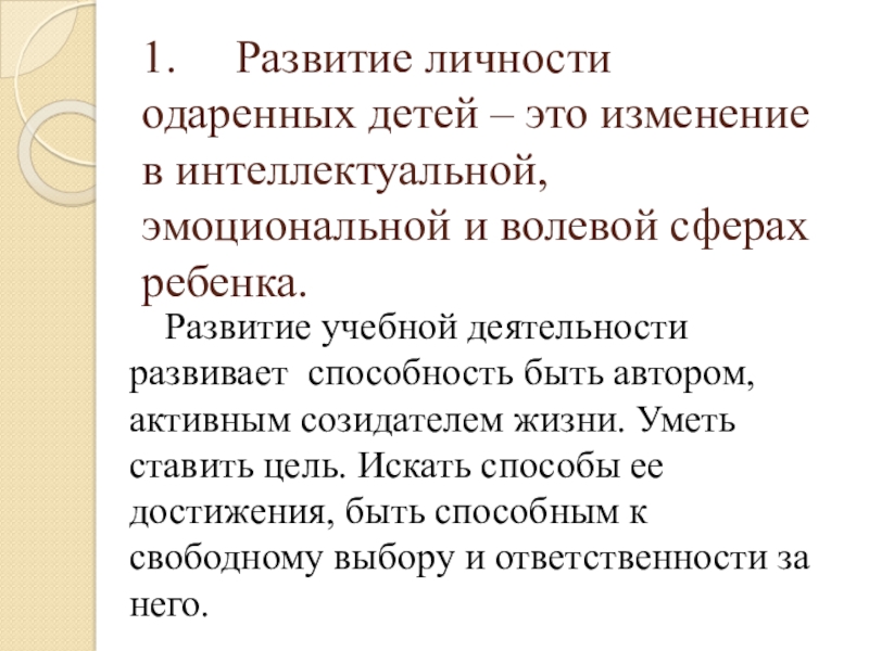 Слайд 201. Развитие личности одаренных детей – это изменение в