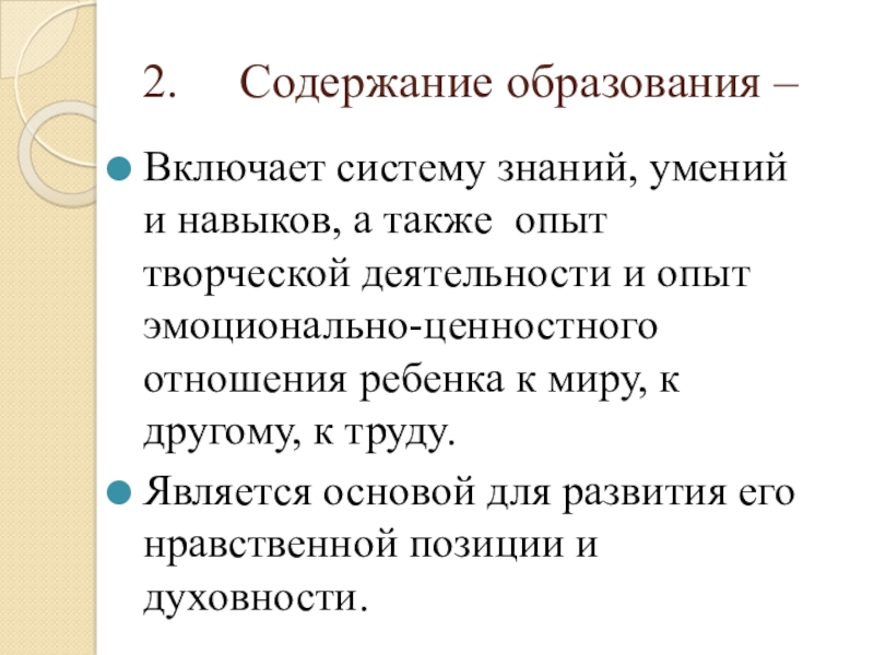 навыков, а также опыт творческой деятельности и опыт эмоционально-ценностного отношения ребенка к миру, к другому, к труду.