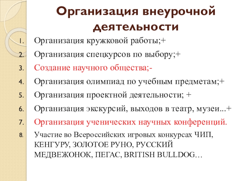 Организация конкурсов, викторин, интеллектуальных игр.+