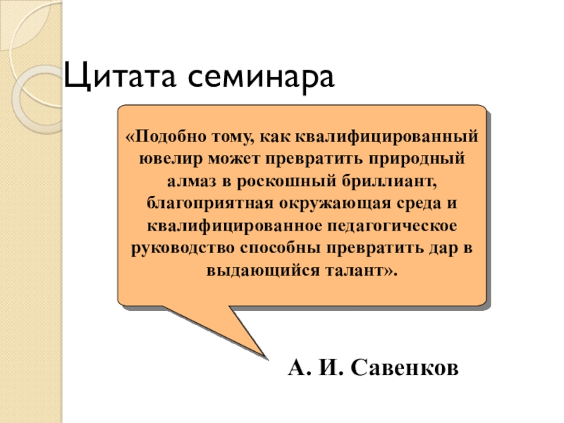 в роскошный бриллиант, благоприятная окружающая среда и квалифицированное педагогическое руководство способны превратить дар в выдающийся талант».