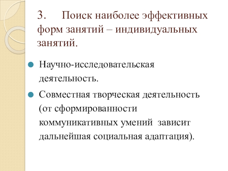 Слайд 223. Поиск наиболее эффективных форм занятий – индивидуальных занятий.