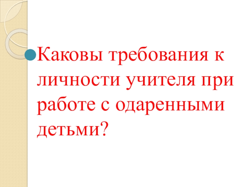 Слайд 5Каковы требования к личности учителя при работе с одаренными детьми?