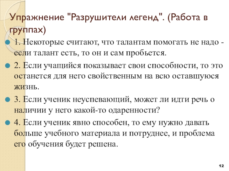 Слайд 12Упражнение "Разрушители легенд". (Работа в группах)