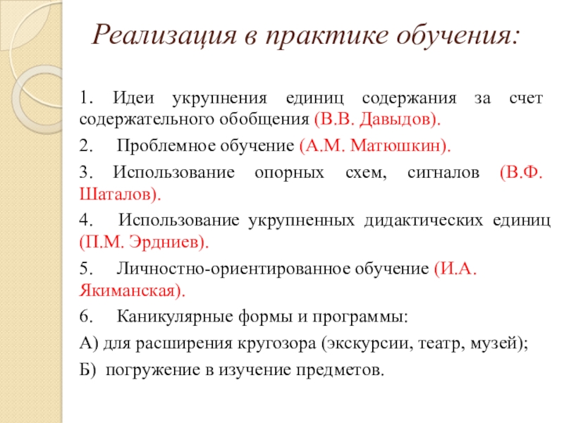 4. Использование укрупненных дидактических единиц (П.М. Эрдниев).