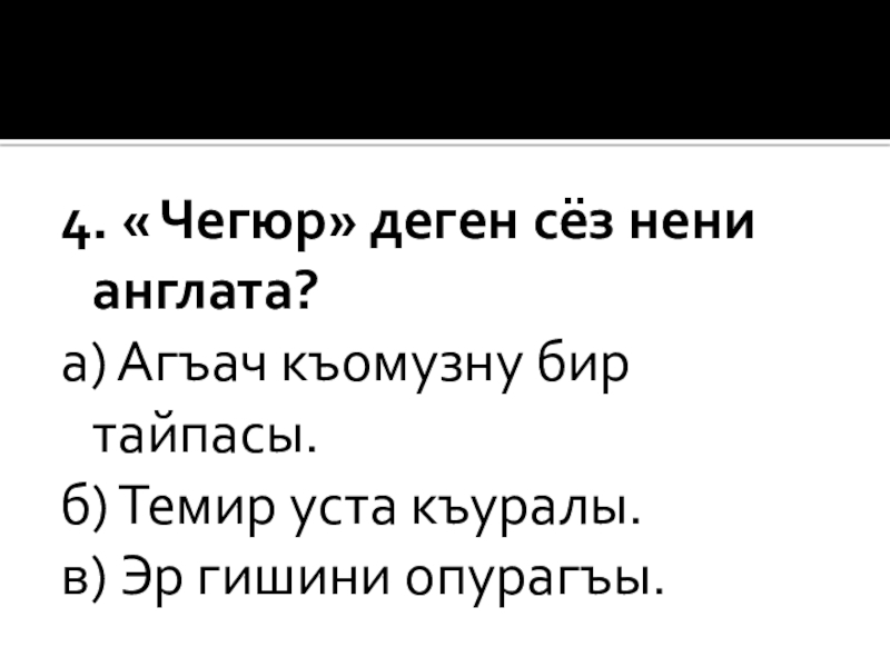 Слайд 74. « Чегюр» деген сёз нени англата?