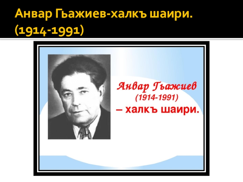 Слайд 11Анвар Гьажиев-халкъ шаири. (1914-1991)