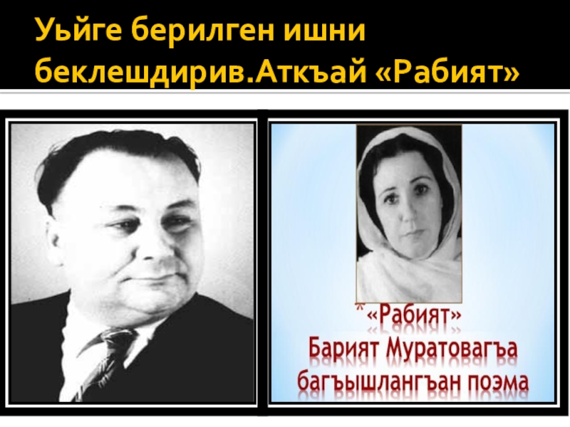 Слайд 3Уьйге берилген ишни беклешдирив.Аткъай «Рабият»