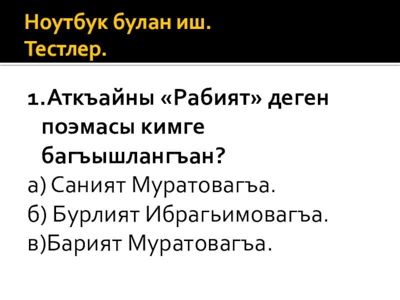 1.Аткъайны «Рабият» деген поэмасын беклешдирив.