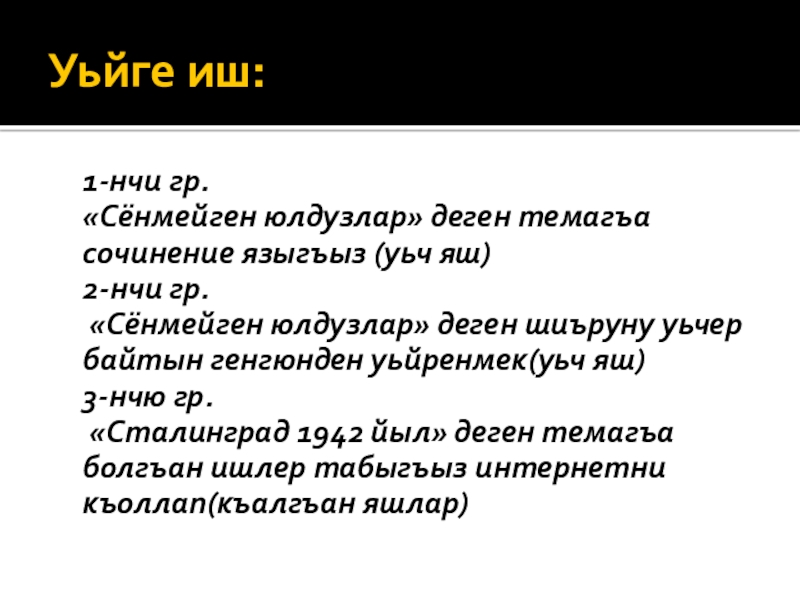 «Сталинград 1942 йыл» деген темагъа болгъан ишлер табыгъыз интернетни къоллап(къалгъан яшлар)