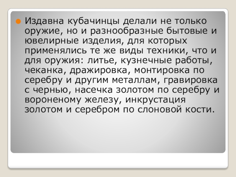Слайд 3Издавна кубачинцы делали не только оружие, но и разнообразные бытовые и
