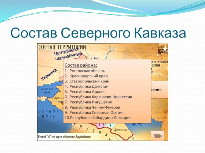 Слайд 1Презентация на тему: «Северный Кавказ»