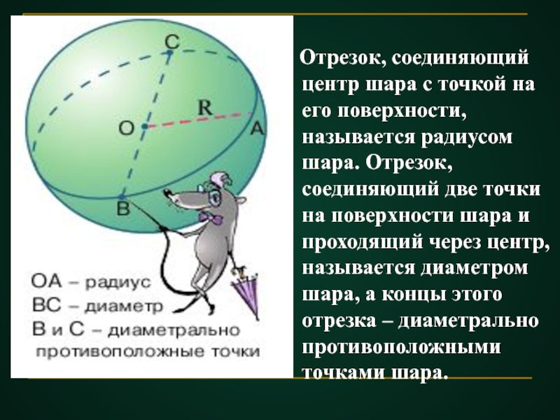 Слайд 5 Отрезок, соединяющий центр шара с точкой на его поверхности,