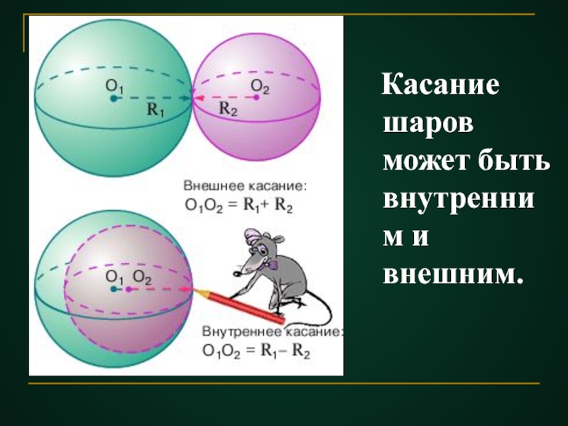 Слайд 38 Касание шаров может быть внутренним и внешним.