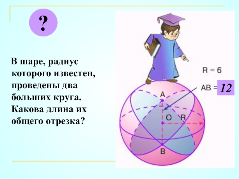 Слайд 34 В шаре, радиус которого известен, проведены два больших круга.