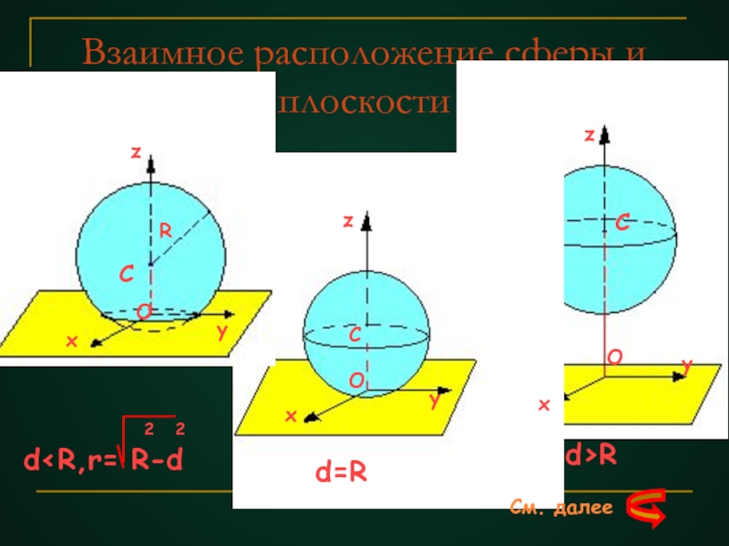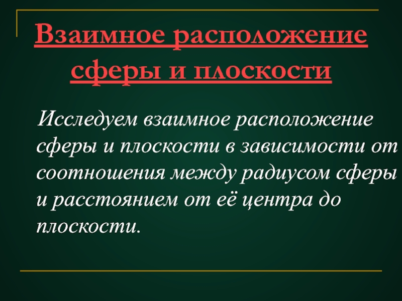 плоскости в зависимости от соотношения между радиусом сферы и расстоянием от её центра до плоскости.