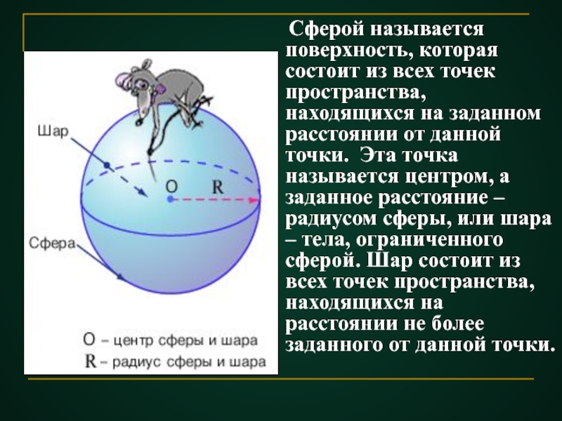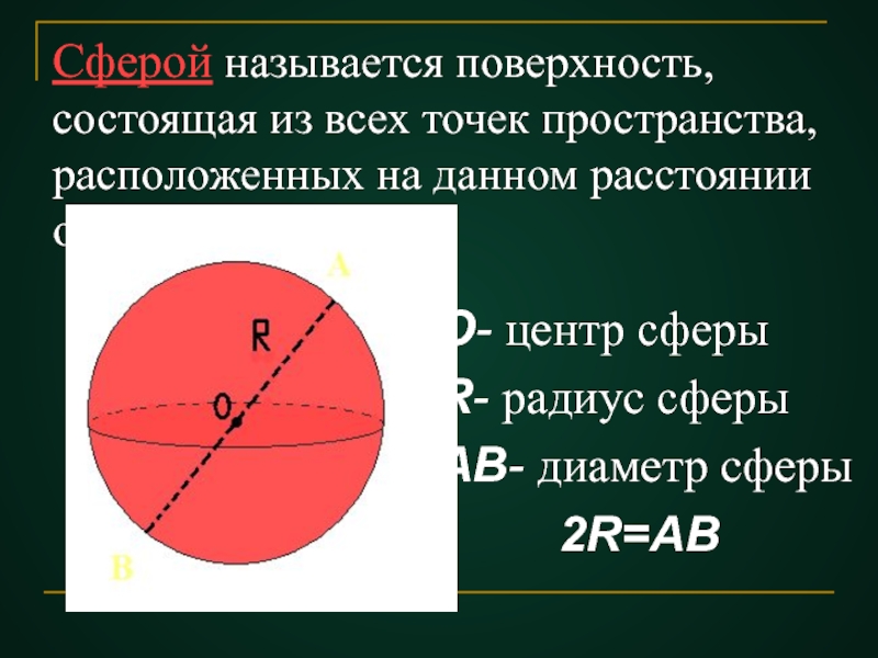 Слайд 4 Сферой называется поверхность, которая состоит из всех точек пространства,