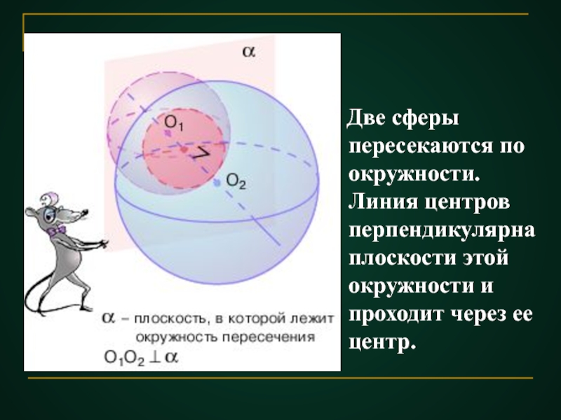Слайд 39 Две сферы пересекаются по окружности. Линия центров перпендикулярна плоскости