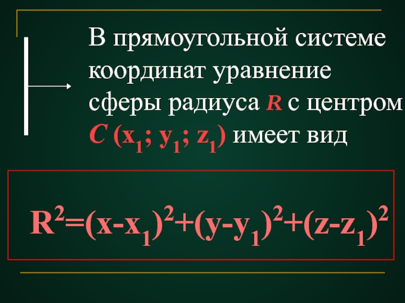 Слайд 19В прямоугольной системе координат уравнение сферы радиуса R с центром С