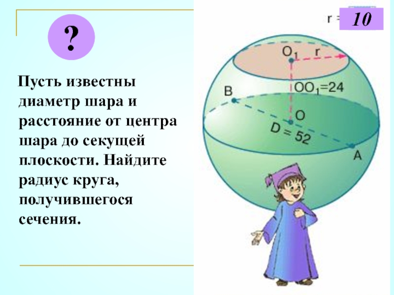 Слайд 14 Пусть известны диаметр шара и расстояние от центра шара