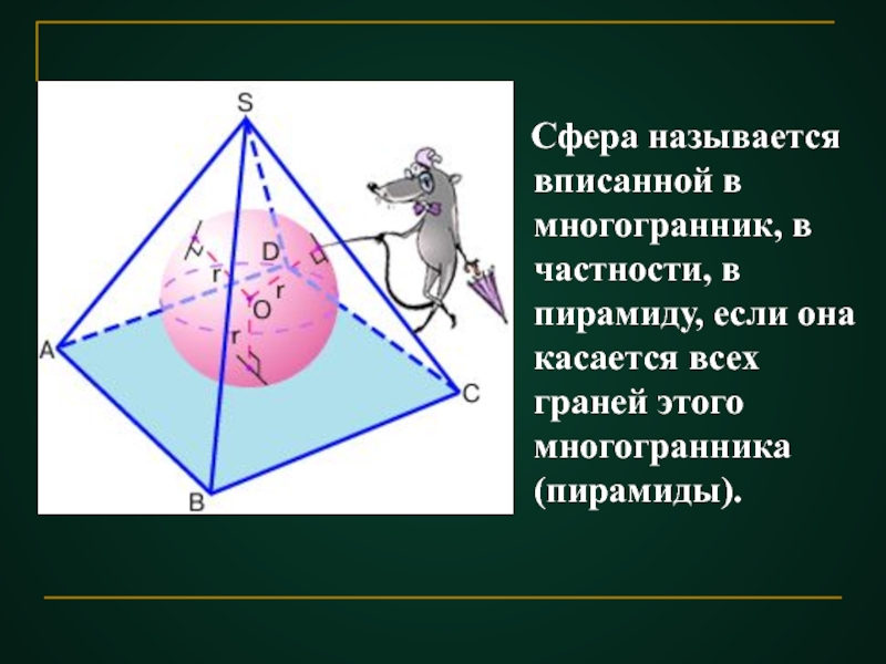 Слайд 42 Сфера называется вписанной в многогранник, в частности, в пирамиду,