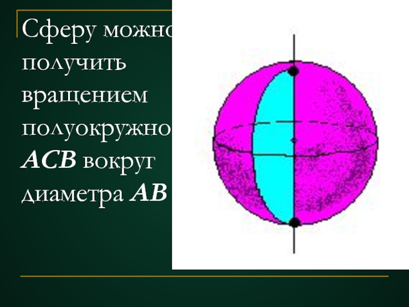 Слайд 7Сферу можно получить вращением полуокружности АСВ вокруг диаметра АВ