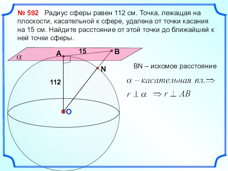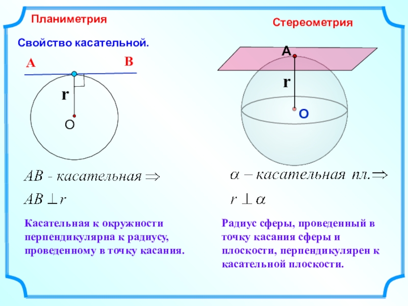 Радиус сферы, проведенный в точку касания сферы и плоскости, перпендикулярен к касательной плоскости.