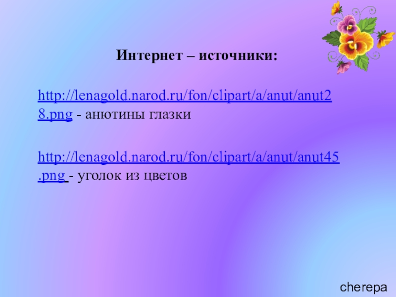 Это сайт презентаций, где можно хранить и обмениваться своими презентациями, докладами, проектами, шаблонами в формате PowerPoint с другими пользователями. Мы помогаем школьникам, студентам, учителям, преподавателям хранить и обмениваться учебными материалами.