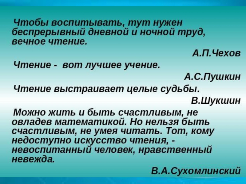 Пришло понимание того, что школьная библиотека уже не может быть только местом для выдачи книг. Современное библиотековедение в качестве главной из насущных задач учебной библиотеки выдвигает обучение учащихся читательской и инфор-мационной культуре. Поскольку приобщение детей и подростков к чтению, формирование информационной культуры учащихся позволяет школьной библиотеке воспитать грамотную, интеллектуальную, творческую, нравственную личность, способную жить в информационном обществе и обществе знаний.