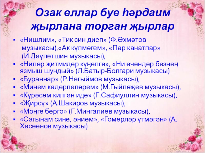 Озак еллар буе һәрдаим җырлана торган җырлар