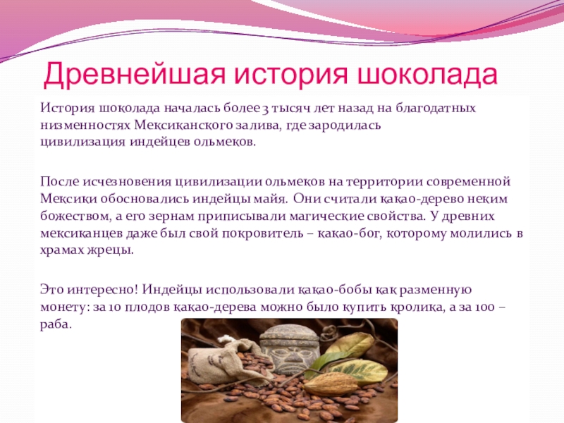 Найти информацию о истории происхождения шоколада