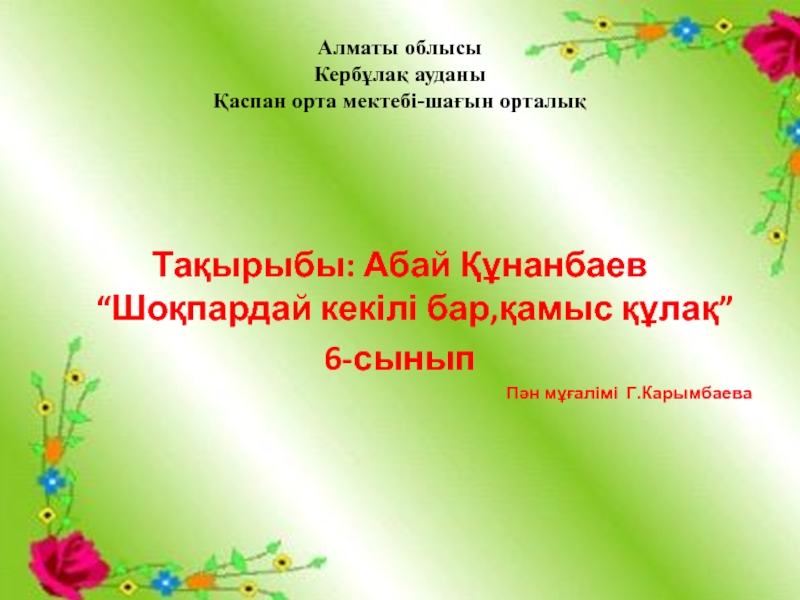 «Шоқпардай кекілі бар қамыс құлақ» өлеңі жайлы толық түрде түсінік беру.