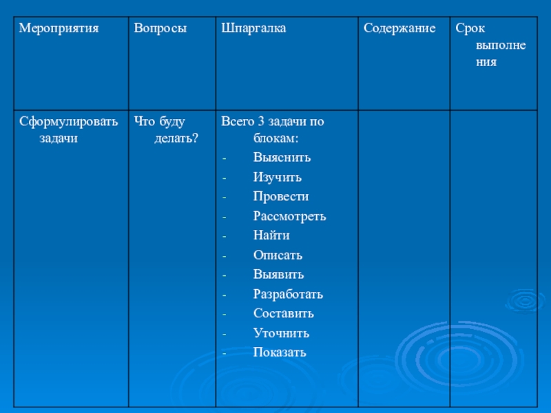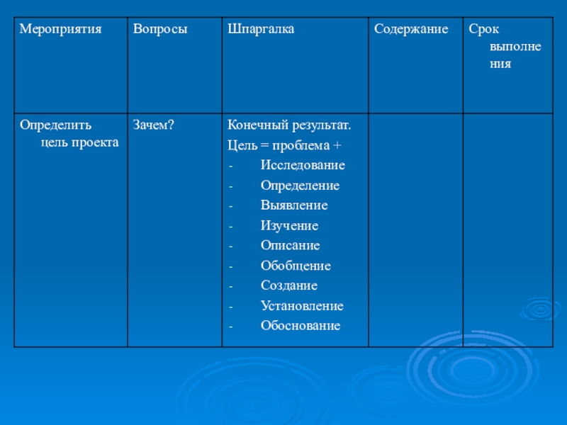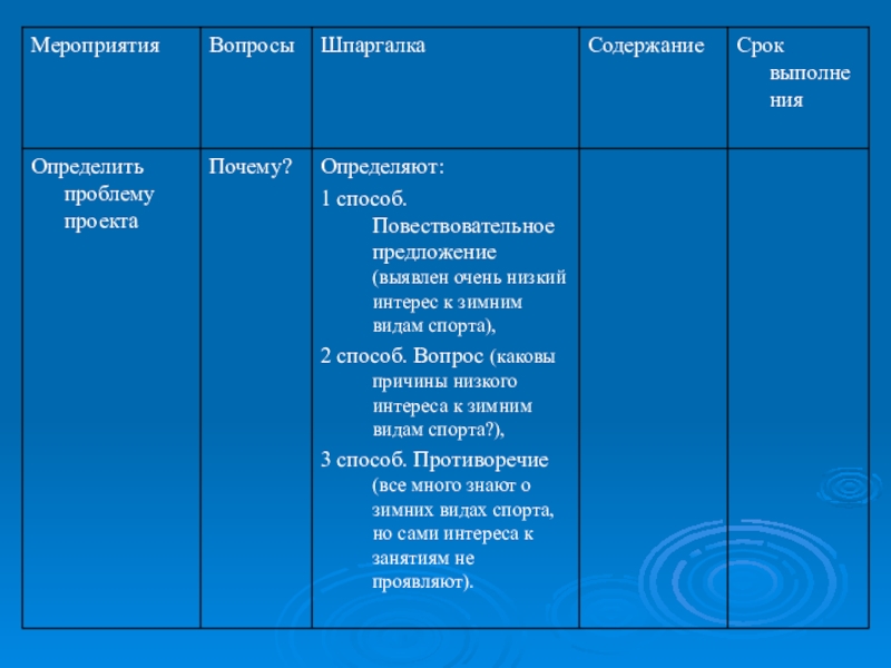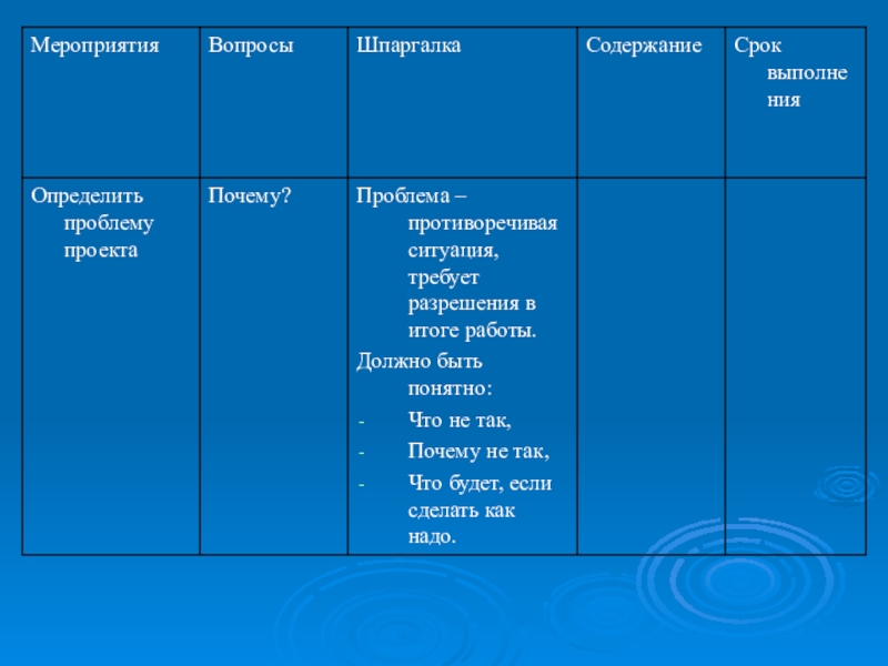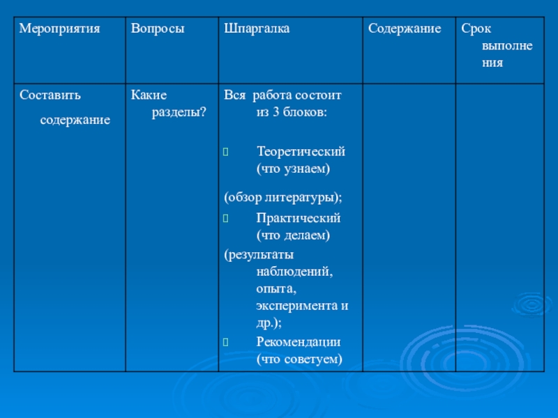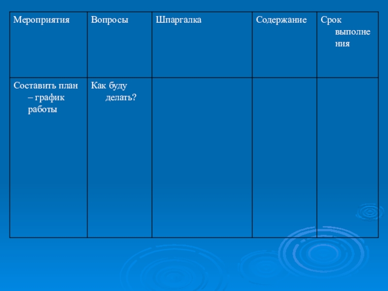 Презентация, доклад на тему Шпаргалка План - график работы над проектом