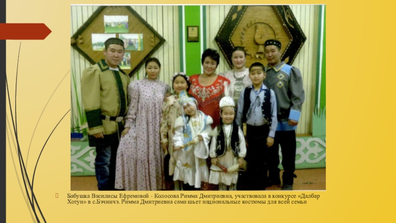 Слайд 24Бабушка Василисы Ефремовой - Колосова Римма Дмитриевна, участвовала в конкурсе «Далбар