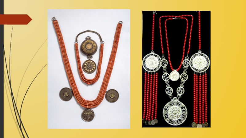 дающий богатство. Ювелирные украшения из золота, как наиболее дорого стоящие, могли позволить себе иметь только состоятельные женщины, поэтому встречались редко. Будучи желтым, золото ассоциируется с солнечной энергией и огнем. Очень популярными у женщин были серебряные или золотые кольца со вставками из камней. Красному цвету придавалось большое значение в различных обрядах и действиях магического характера и потому, по своей цветовой символике, коралл ассоциируется с огнем, солнцем, кровью - символами жизненной энергии, тепла, очищения.