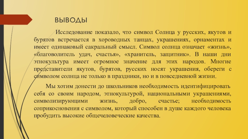 Объектом нашего исследования стал символ солнца в хороводных танцах, украшениях, орнаментах якутов, бурятов и русских.