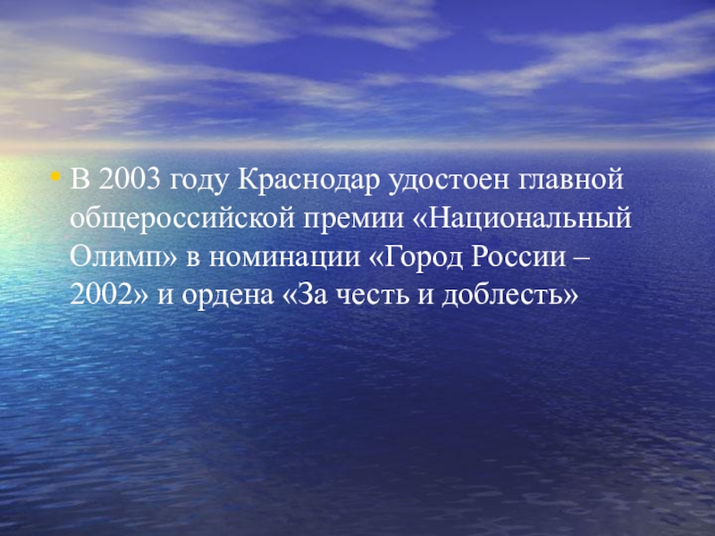 В 2003 году Краснодар удостоен главной общероссийской премии «Национальный Олимп» в