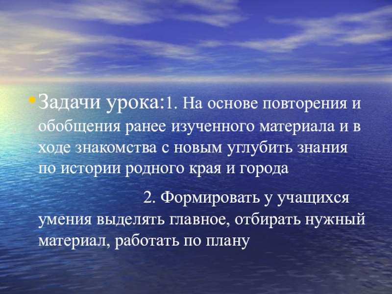 в ходе знакомства с новым углубить знания по истории родного края и города